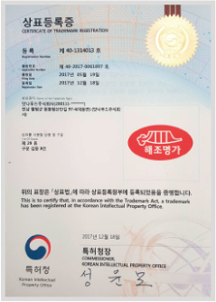 특허청에서 상표법에 따라 상표등록원부에 등록되었음을 증명하는 상표등록증입니다.