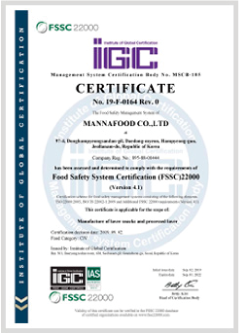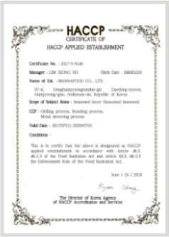 FDA 시설 등록 등 제조, 생산에 많은 인증을 받아 위생적이고 안전한 자격을 갖춘 김 전문 제조 업체입니다.