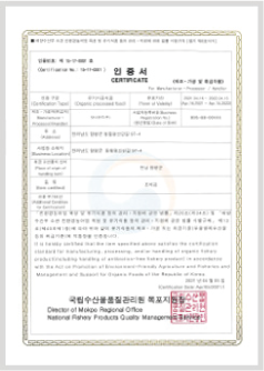 체계적인 관리·위생 제조 인증서