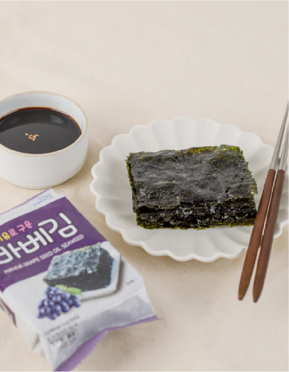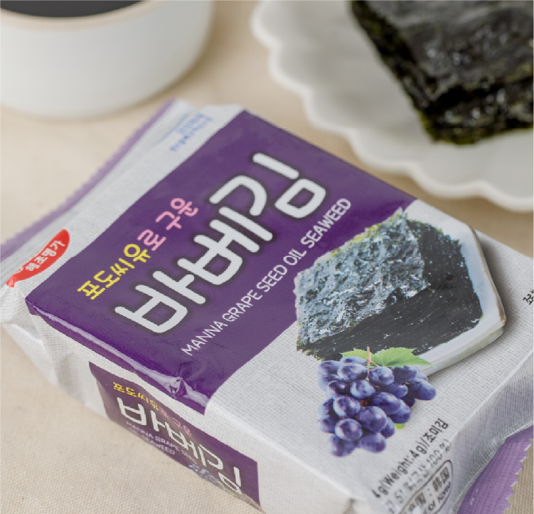 김(국산)51%, 옥배유(옥수수배아/외국산:미국, 러시아, 브라질 등)39%, 참기름 (참깨:외국산/인도, 에디오피아, 파키스탄 등)5%, 가공소금2%, 포도씨유2%, 들기름1%